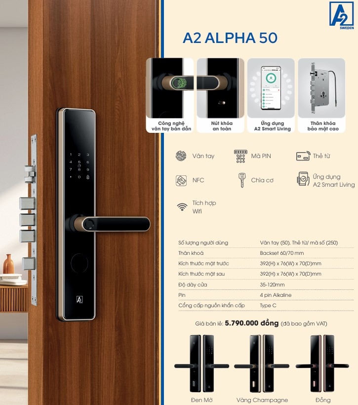 A2 Alpha 50 không chỉ là chiếc khóa – đó là giải pháp bảo mật thông minh, an toàn và tiện nghi cho ngôi nhà của bạn.
